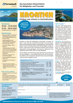 Bitte senden Sie mir das detaillierte Reiseprogramm zur KROATIEN-Reise